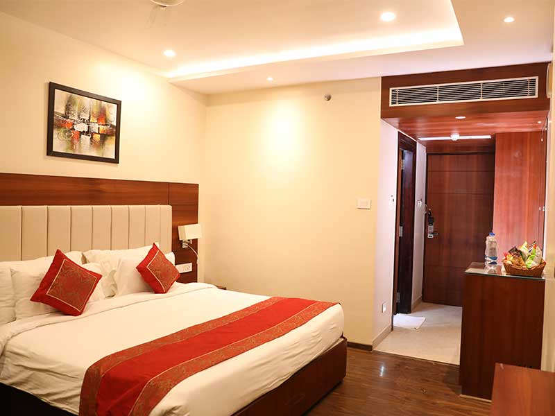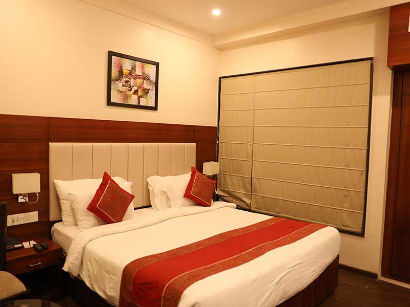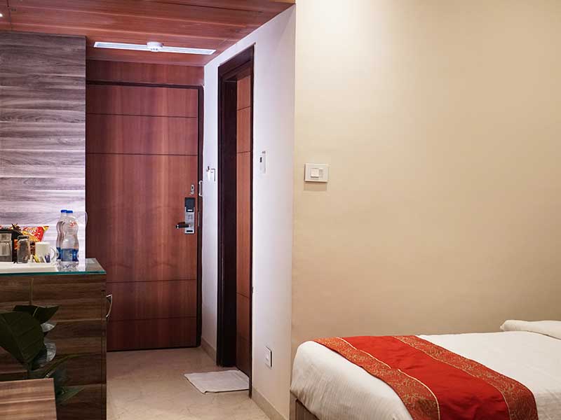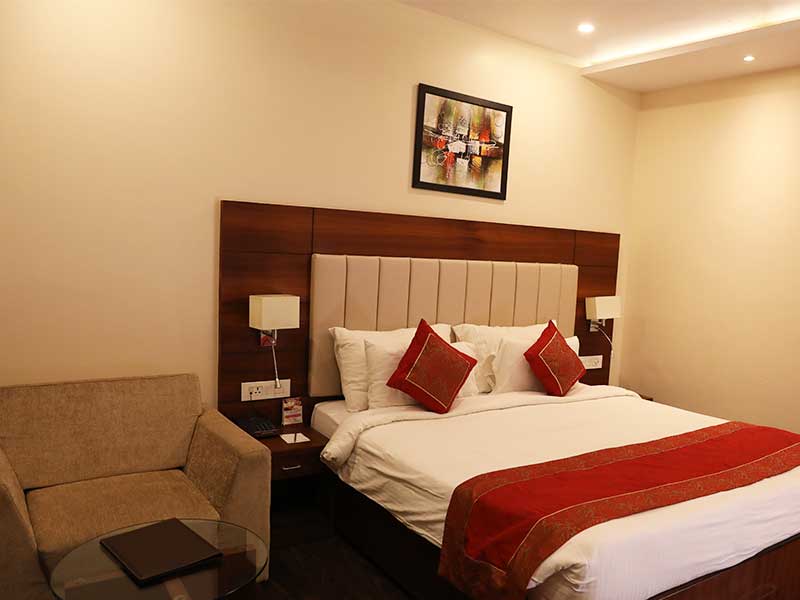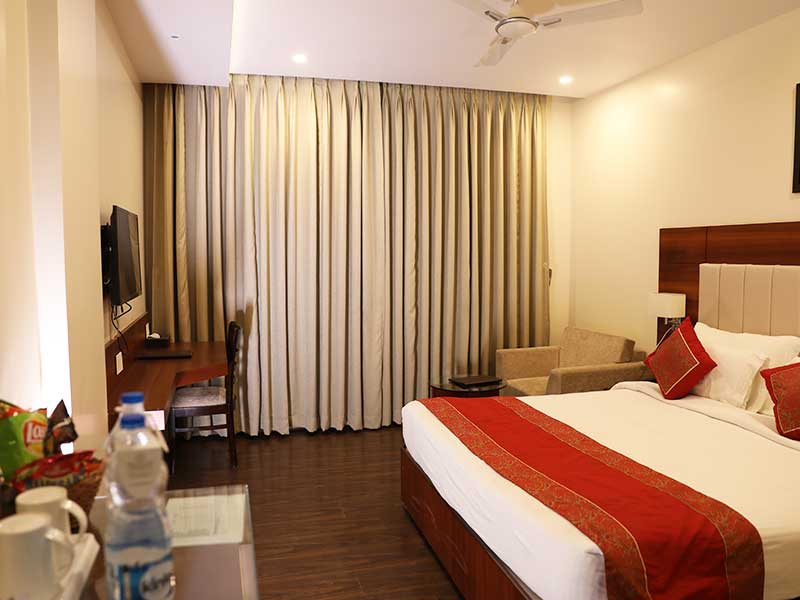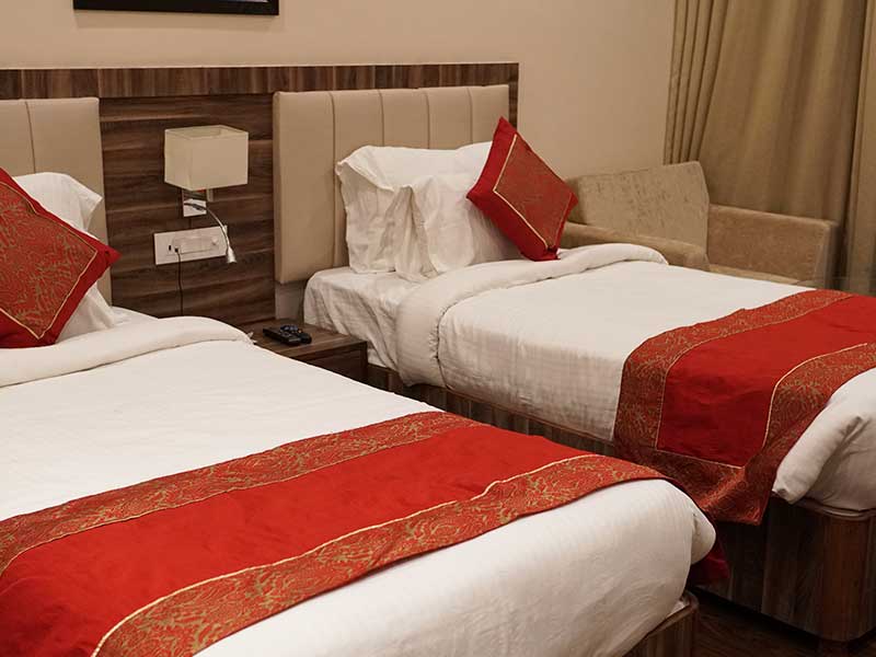Hotel Tridev’s Executive Superior Rooms promises you a lush ambience ideal for corporate travellers along with colleagues, friends or family. With a light Oak-wood floor and earth accents in the decor, the Executive Superior Rooms have a warm, inviting ambience, complemented by functional and contemporary design. These hotel rooms feature LED televisions, complimentary high speed Internet, comfortable single seater luxury sofa with table, tea/coffee makers & work desk. Spacious modern toilets ensure maximum pleasurable stay for all. The large 280 sqft. Executive Superior Room promises a Luxury & Budget Hotel room in Varanasi. There are two bed options in Executive Superior Room – one offering a double bed of king size and another offering twin separate king size beds.