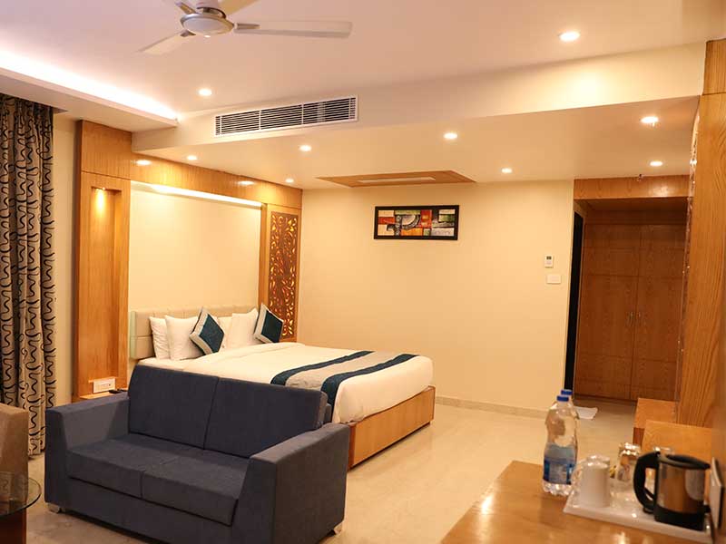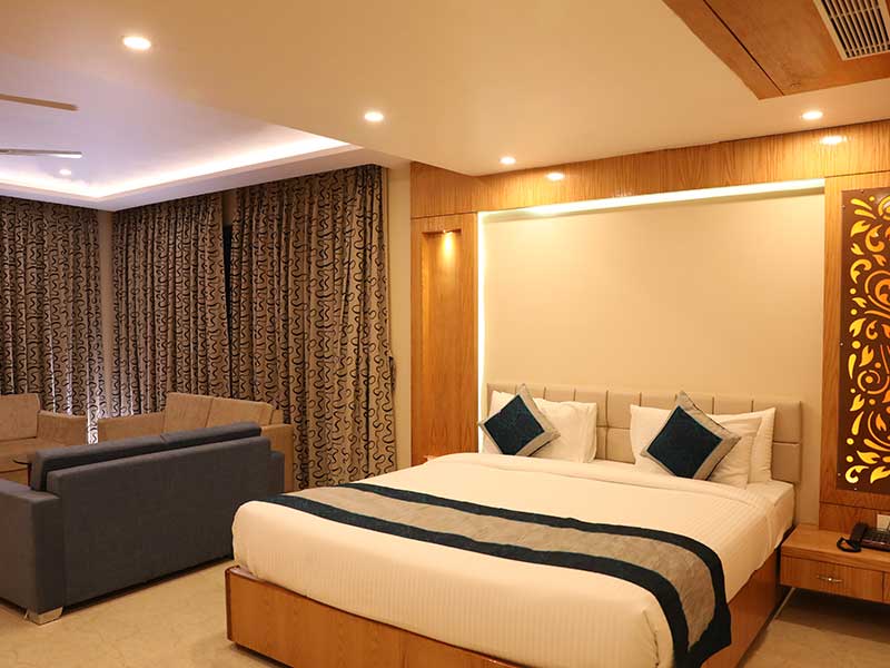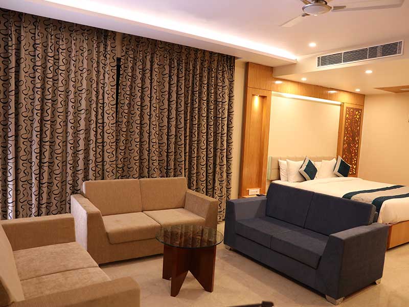 The spacious 340 sqft vacation abode at Hotel Tridev brings the penultimate Scott expression for luxurious living. Our Scott Suites envelopes you with classic Scott style offering a large room with luxurious ameneties in the heart of the city. Designed with modern interior and splendid ambiance, these spacious hotel rooms feature LED televisions, complimentary high speed internet, comfortable seating area with super comfy sofas, tea/coffee makers and a personal mini bar. Spacious modern toilets ensure maximum pleasurable stay for all. We welcome you to experience the truly extraordinary signature Luxury Hotel in Varanasi.